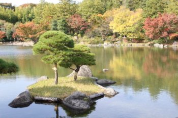 Opposées dans leur signification symbolique, l’Île-tortue (représentant la stabilité) et l’Île-grue (représentant la migration de l’âme) sont très souvent associées dans les jardins japonais.